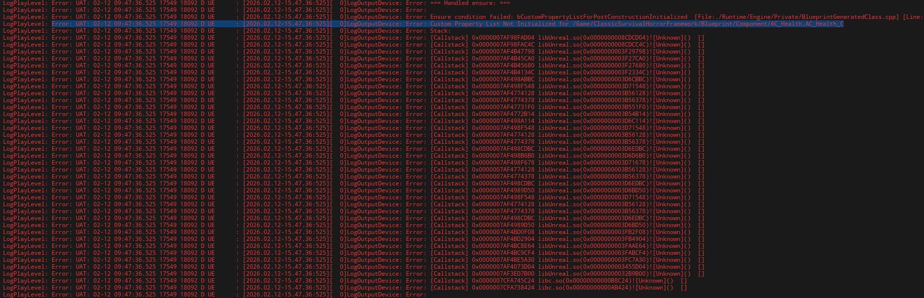 Hey Randy, I just tested it on my Windows PC, and the project packaged successfully without any issues. Have you recently made any changes(renaming, etc.) to the AC_Health variables? Take a backup of your project first, then create a duplicate of the AC_Health. Remove the old one from your character, attach the new one, and try testing it. The Health component logic is fairly simple, so you can easily create a new one or even move its code directly into the Character class and connect its references to your new logic.