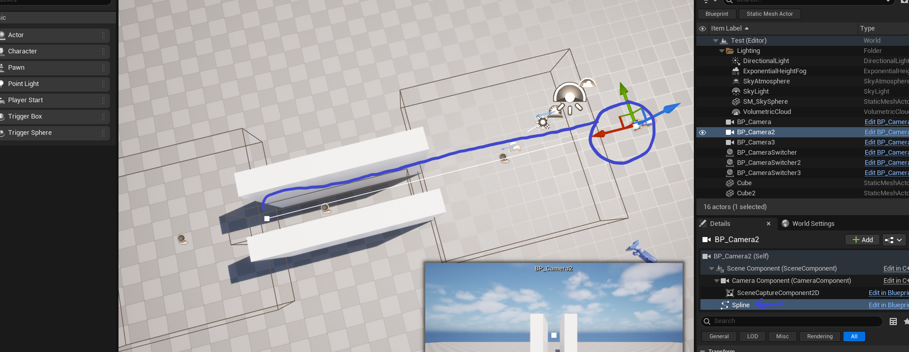 when the player ends overlapping though the camera stops which part of the logic is working haha it just isn’t attaching to the spline and is moving infinitely backwards into the abyss 😅