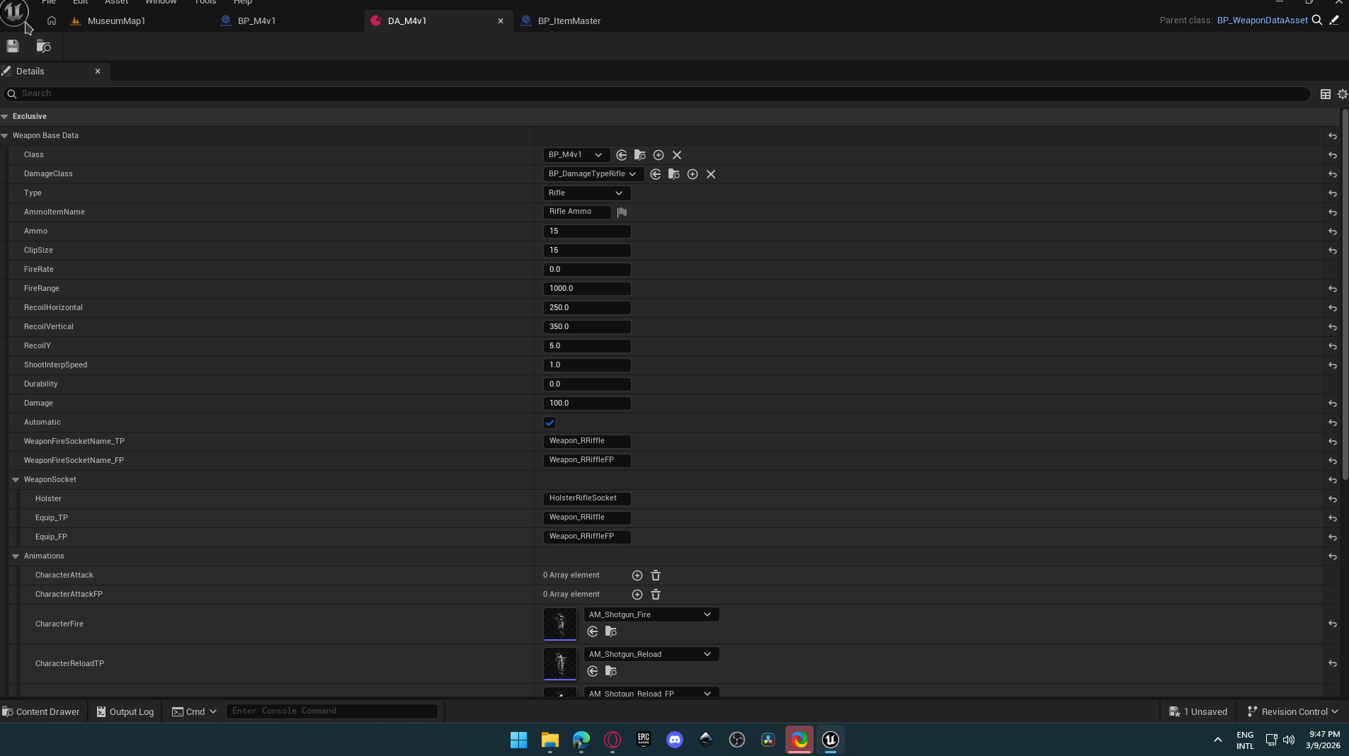Hi, i need to create a weapon of type rifle but i get the error "this item needs data asset" but i already created a file of type weapons base data and assigned to the new rifle weapon blueprint but it do not works.