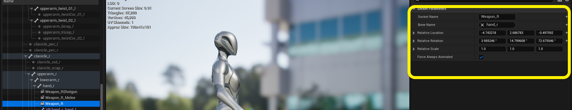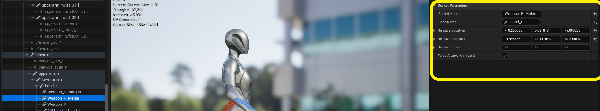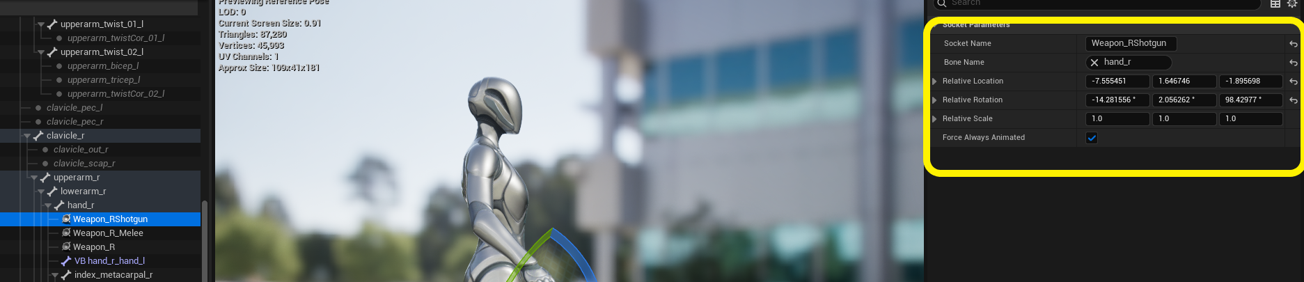 I also sent you the tested values for these sockets(Images provided), set them exactly as I provided, though you might need to tweak them depending on your character’s form. For the default UE5 mannequin, these values work very well.